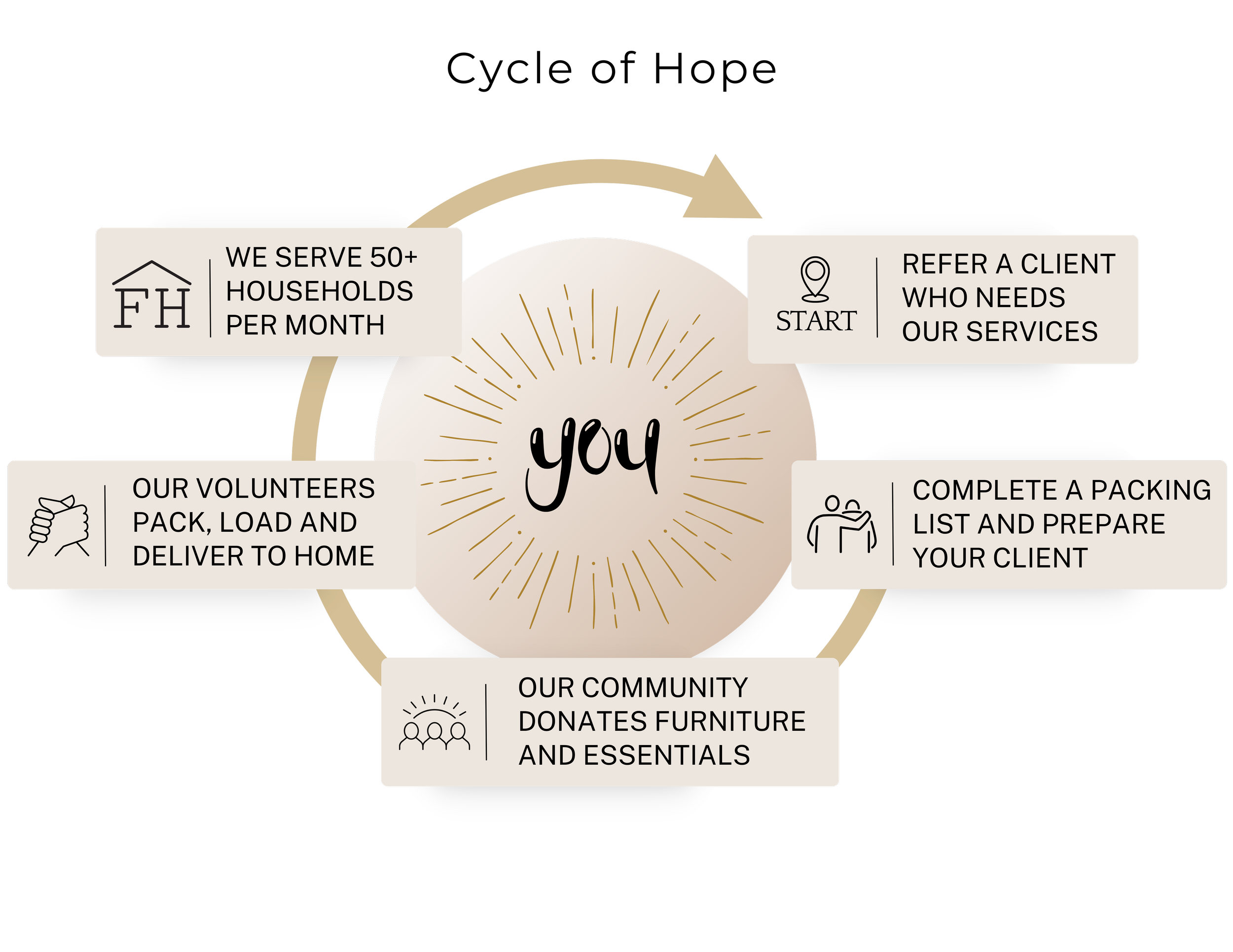By becoming an agency partner with Furnish Hope, you’ll have the opportunity to kickstart our Cycles of Hope throughout Central Oregon.